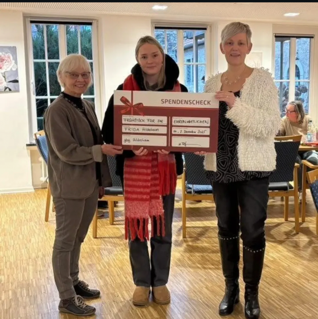 Helga Kassebom ließ in ihrer Rede die Geschichte von FRIDA Revue passieren: von den Anfängen, über die vielen Herausforderungen und Erfolge bis hin zu dem, was heute daraus gewachsen ist – ein Netzwerk aus Menschlichkeit, Unterstützung, Gemeinschaft und ehrenamtlichem Engagement. Bei Kaffee und einem reichhaltigen Kuchenbuffet wurde geplaudert, gelacht und erinnert.